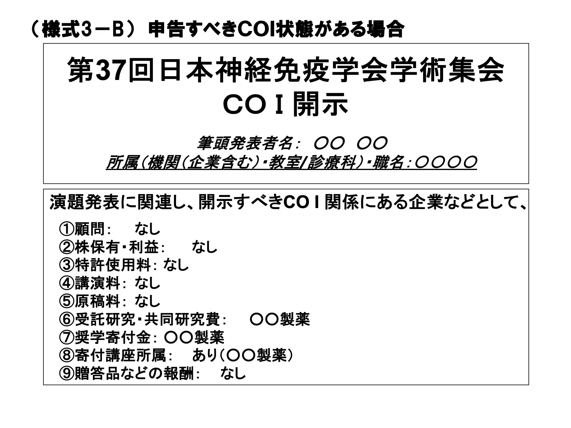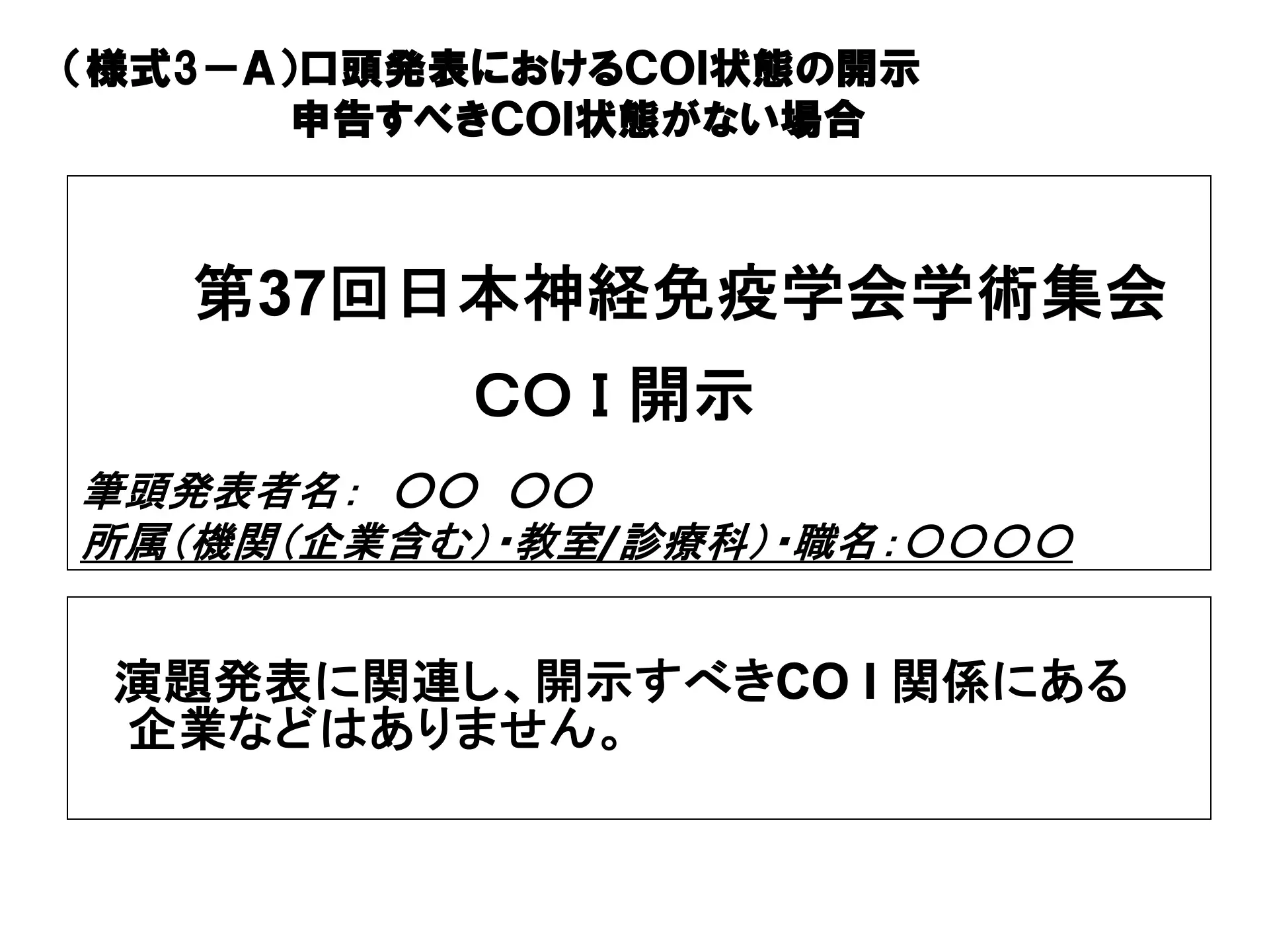 COIの掲示につきましては、下記の「発表時における利益相反の開示」をご確認ください。